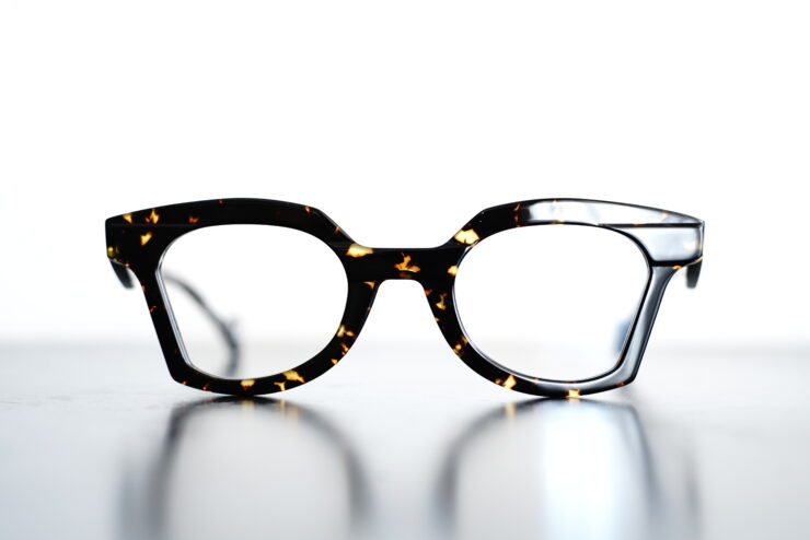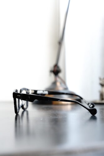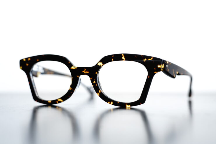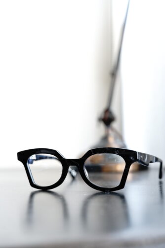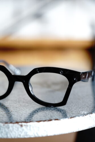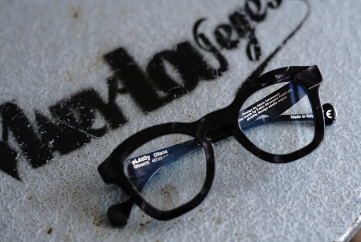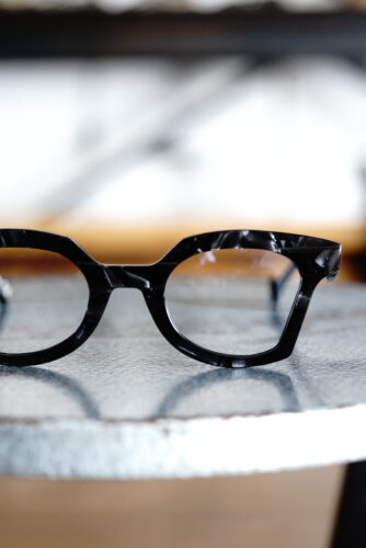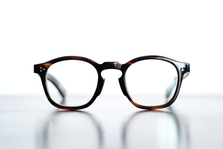純粋な黒ではありませんが、定番的な黒ぶち眼鏡という立ち位置でのご提案です